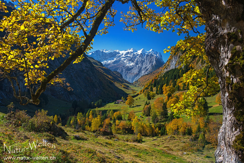 Monatsbild November 2025 - In diesem Herbst leuchteten die Ahornbäume im Gental besonders schön und intensiv.