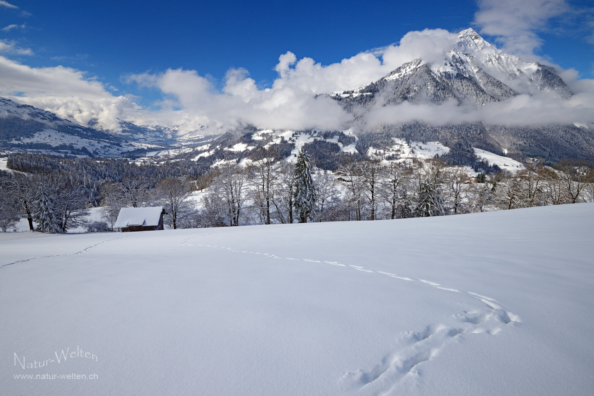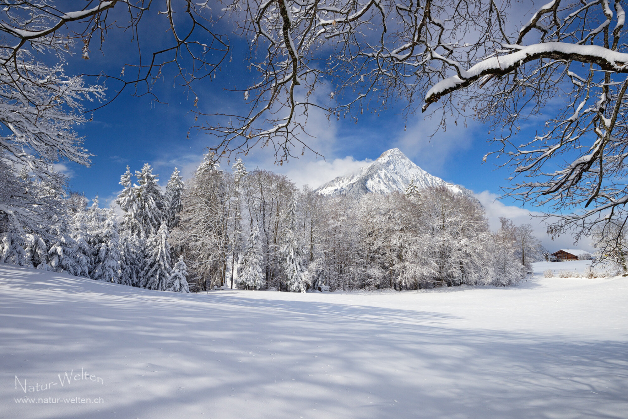 15.3.2026 10:04 - Kurzes Wintercomeback:Letztes Wochenende gab uns der Winter noch einmal ein kurzes Stelldichein. Nach der Konsultation der Wetterberichte sind wir am Sonntagmorgen bereit, um die kurze Wolkenlücke über dem Berner Oberland zu erwischen. Kaum erscheint das erste Blau am Himmel sind wir auch schon unterwegs nach Aeschiried und staunen über knapp 30cm Neuschnee. So schön verschneit war die Landschaft den ganzen Winter 2025/26 nie. Also: geniessen, fotografieren und feiern! Zusammen mit Carmen stapfen wir durch den tiefen Neuschnee und bewundern immer wieder die wunderschöne Pyramide unseres Hausbergs, dem Niesen. Die Herausforderung ist es hier, keine Strom- oder Telefonleitungen im Motiv zu haben.