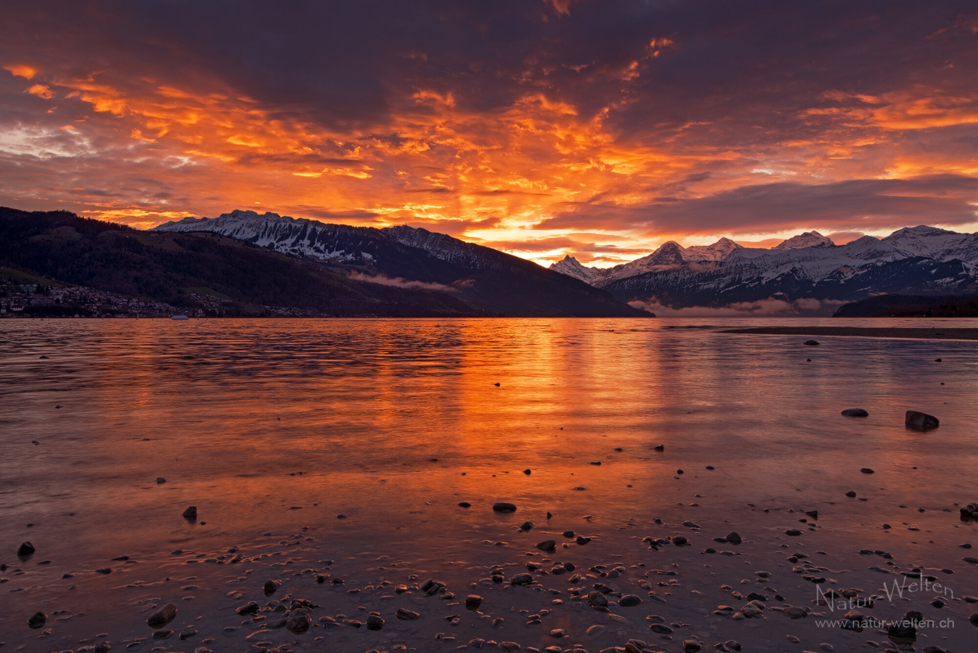 22.2.2026 07:26 - Naturgemälde:Gerne zeige ich Euch hier noch einmal eine Impression von diesem wundervollen Morgen am Thunersee. Himmel und Wasser haben intensiv geglüht und ich hatte viel Zeit, um in Ruhe meine "Naturgemälde" zu gestalten. Dabei habe ich gestaunt, wie weit östlich die Sonne nun schon aufgeht. Schon lange hatte ich Sehnsucht nach einer solchen Stimmung. Endlich hat es mal wieder geklappt und es war wirklich ein Genuss für alle Sinne.