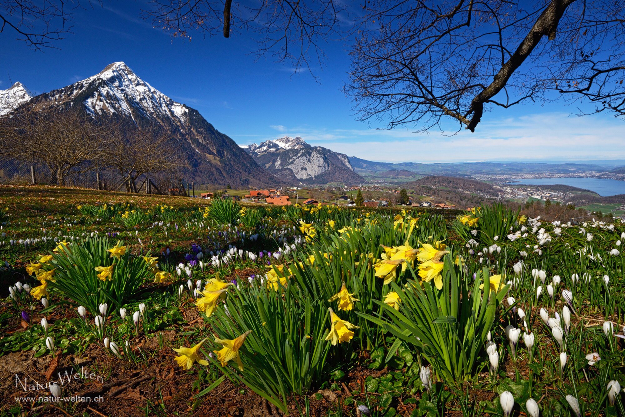 13.3.2026 11:04 - Frühling in Aeschi bei Spiez:Während es draussen bereits wieder schneit und tiefer Winter ist, blicken wir noch einmal auf die prächtigen Frühlingstage von Mitte März zurück. Hier noch eine zweite Variante von den Frühlingsblumen in Aeschiried (BE), diesmal auch mit unserem stolzen Hausberg, dem Niesen. Die Kulisse lädt wirklich zum Träumen ein und wir geniessen diesen warmen Vormittag in vollen Zügen.
